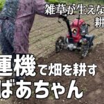 【畑仕事】雑草が生えないように畑を耕運機で耕す90歳のばあちゃん【田舎暮らし】【vlog】